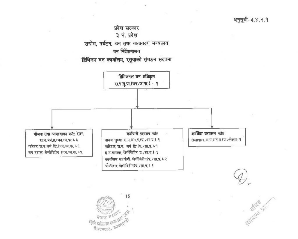 साङ्गठनिक संरचना नयाँ सूचनाहरु सम्पर्क डिभिजन वन कार्यालय – रसुवा फोन: ०१०–५४०१०७ फैक्स: ०१०–५४०१०७ ईमेल: info@dforasuwa.gov.np वेवसाइट: dforasuwa.gov.np